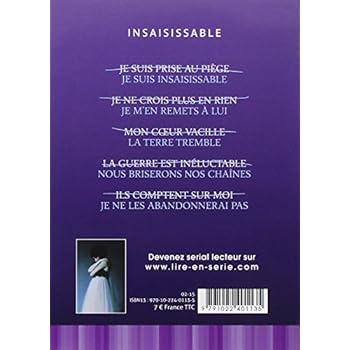 Le tome 2 s'était terminé sur un moment complètement bouleversant, qui appelait la suite d'urgence. On retrouve donc Juliette, notre héroine là où on l'avait laissé, c'est-à-dire en fâcheuse posture. Elle se retrouve éloignée de ses amis qui ont été dispersés ça et là et n'a plus tous ses repères. Je ne vous en dirai pas plus sur l'histoire pour ne pas gâcher le plaisir.Ce que je dois vous dire en revanche, c'est que ce dernier tome marque un véritable tournant par rapport aux deux précédents. En effet, tous les personnages évoluent et mûrissent d'une manière spectaculaire! Juliette se révèle complètement. Terminé le petit oiseau fragile et torturé. Terminées les courtes phrases barrées. Elle est désormais déterminée, puissante, elle sait ce qu'elle veut mais surtout elle sait enfin ce qu'elle ne veut plus. Elle va également affronter un entrainement musclé pour mieux appréhender sa nouvelle force. J'ai été bluffée par un tel changement et par le fait qu'elle sache désormais s'affirmer auprès des autres. Sa présence est enfin tangible!J'ai également été subjuguée par Warner. Oui, oui, subjuguée! Je me souviens pertinemment que je ne pouvais pas le sentir dans le premier tome. Comme ça me parait loin maintenant! Warner m'a bouleversé. Les nombreuses révélations le concernant me l'ont fait voir sous un jour nouveau. On comprend maintenant beaucoup de choses concernant sa personnalité. Warner m'a ému, m'a laissée pantoise, m'a oppressée à plusieurs reprises. Je l'ai trouvé complexe et fascinant. Un autre personnage dont je tairai le nom est en revanche devenu franchement détestable à tel point que je soufflais de mécontentement à chaque fois qu'il ouvrait la bouche et proférait de nouvelles énormités. On revoit également les anciens personnages du point Omega notamment Castle mais surtout Kenji qui est une vraie bouffée d'air frais face à une situation politique et militaire complexe.Le récit semble dégager deux parties distinctes. Dans la première, le rythme est assez lent, le style contemplatif ce qui permet de bien mettre en valeur les nouvelles personnalités des protagonistes. L'écriture une fois de plus est splendide et déroutante. Dernier tome oblige, on a droit à un lot de révélations diverses et variées, amenées avec subtilité par l'auteur. Dans la deuxième partie, le rythme est déjà plus soutenu, l'action beaucoup plus présente. Les évènements se précipitent jusqu'à l'apothéose finale. J'ai été totalement convaincue par la fin de cette trilogie qui balaie d'un grand geste la déception causée par le tome 2. Je n'aurai vraiment pas pu rêver d'une plus belle conclusion.C'est donc la gorge nouée que j'ai terminé ma lecture d'Insaisissable. Que l'on adore ou que l'on déteste, impossible de rester indifférent face à cette histoire, face à la prose sublime de Tahereh Mafi.